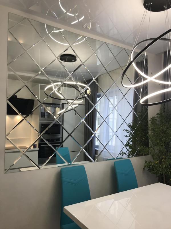 Использована зеркальная квадратная плитка с фацетом.
